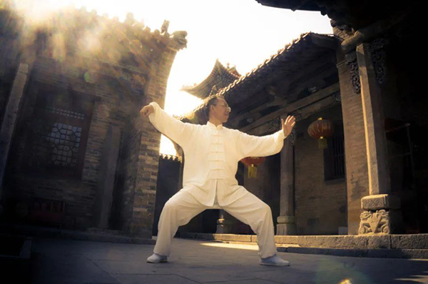 两腿是两个桩,不许前后摆动,摆动了就失去了根基,下盘不稳,在技击中必败。还要看其两膝的方向是否是跟脚尖方向一致,如果不一致,很容易损伤膝盖,很多练太极拳的膝盖损伤,跟这种情形有关。