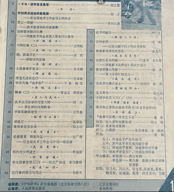 在 1983 年的武术热潮中,《中华武术》杂志不仅是武术文化传承的重要载体,更是推动武术热的关键力量。这本杂志为读者们呈现了一个丰富多彩的武术世界,其中老照片的刊载极具意义。那些泛黄的照片中,有武术前辈们在练武场上的飒爽英姿,一招一式尽显深厚功底;还有武术流派传承的珍贵瞬间,见证着武术的代代相传。
