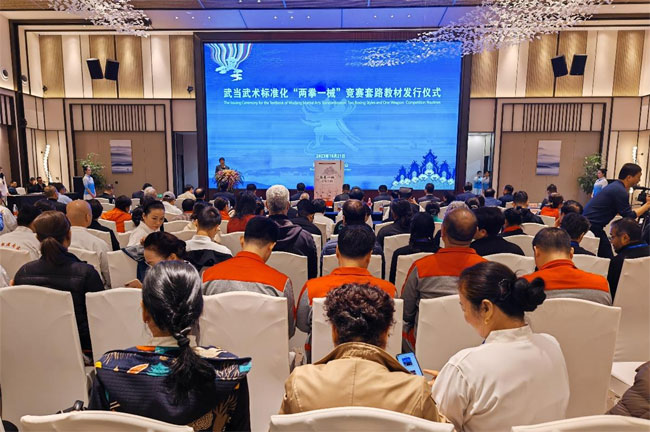 10月21日上午,武当武术标准化建设工程系列丛书《“两拳一械”竞赛套路》教材发行仪式在武当山举行。