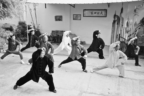 胡门大洪拳总传承人胡振志在习练拳术(霸王开弓式)