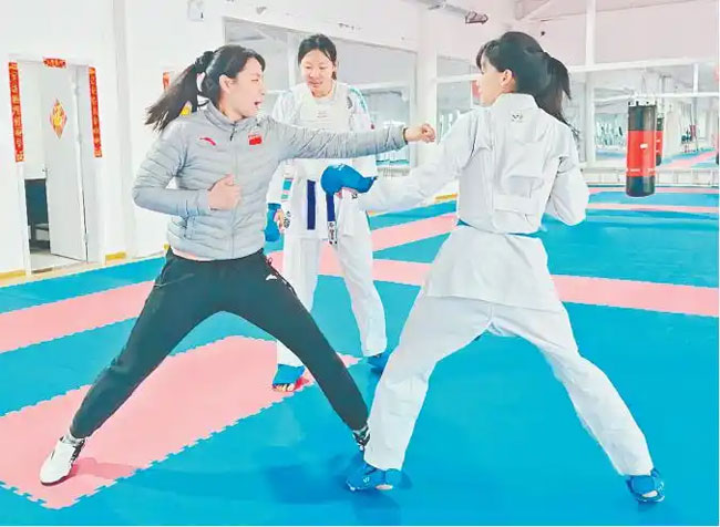 “对手不会配合你任何技术动作,都是以得分为目的。冠军只有那么一个,谁都想要。这个时候就看谁狠了,谁能咬住那最后一口!继续!”2月25日,河南省武术体操冰雪运动中心空手道训练馆里,一个熟悉的身影,动若脱兔;一个熟悉的声音,铿锵有力。