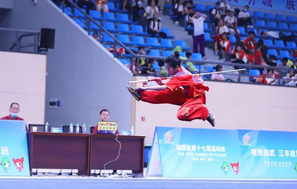 往往一个武术技能成熟的运动员最少都有6年以上的习武时间,扎刀,点棍,腾空飞脚便成了家常便饭。你要是问他们苦不苦,他们只会一笑而过然后高兴的不得了告诉你训练中的趣事这就是武术中的苦中作乐。汗水浸湿的训练服,磨破的裤子仿佛最有说服力,清晨太阳还没升起孩子们就要开始一天的晨跑这便是训练的开始,然后拉柔韧,腿法基本功,枯燥反复的训练让每一次获得的奖牌都显得尤为珍重。